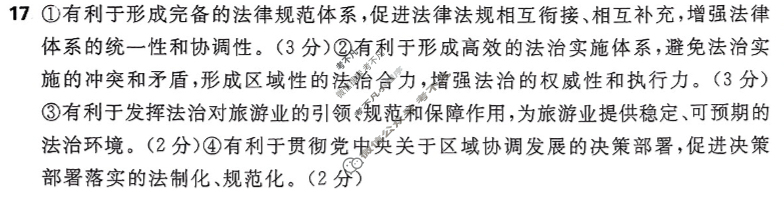 资源详情:[高考必刷卷]2025年东北地区高考名校名师联席命制押题卷(二)2政治(东北)答案 中内容包括《[高考必刷卷]2025年东北地区高考名校名师联席命制押题卷(二)2政治(东北)答案》请在考不凡上搜索。高考必刷卷押题卷胜卷政治选考2025年东北地区高考名校名师联席命制政治押题卷(二)参考答案及评分标准一、选择题:每小题3分,共48分。题号12345678910111213141516答案ADDB二、非选择题:共52分。评分细则17①有利于形成完备的法律规范体系,促进法律法规相互衔接、相互补充,