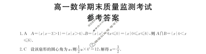 资源详情:陕西省金太阳2023-2024学年高一期末质量监测考试(24-225A)数学答案 中内容包括《陕西省金太阳2023-2024学年高一期末质量监测考试(24-225A)数学答案》请在考不凡上搜索。