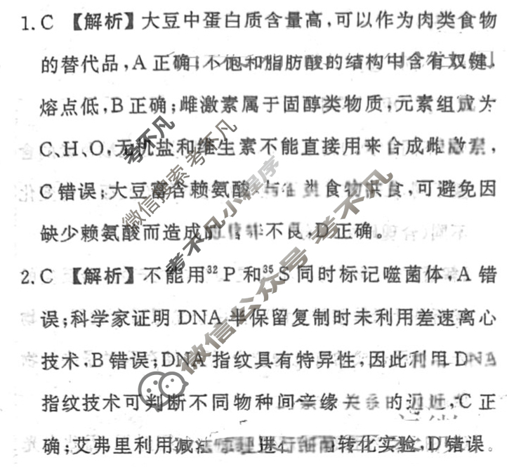 资源详情:2025年衡水金卷先享题·调研卷 普通高中学业水平选择性考试模拟试题 生物学AH(四)4答案 中内容包括《2025年衡水金卷先享题·调研卷普通高中学业水平选择性考试模拟试题生物学AH(四)4答案》请在考不凡上搜索。调研卷生物学(四)参考答案及解析,分竹.生物学(四)画红题通形22(,江一、选择题鹤最有效的措施是建立自然但怕正上正。1.C【解析】大豆中蛋白质含量高,可以作为肉类食物6:D【解析】①使用纤组酶貂桑胶酶处理以获得原的替代品,A正确不饱和脂肪酸的结构伸含有双键!生质什会加细侧膜的结构,这是因
