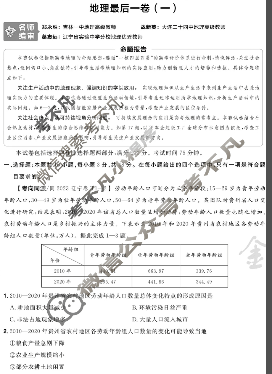 资源详情:[金考卷·百校联盟]2025年黑吉辽、内蒙古普通高等学校招生选择性考试最后一卷(一)1地理(黑吉辽蒙)试题 中内容包括《[金考卷·百校联盟]2025年黑吉辽、内蒙古普通高等学校招生选择性考试最后一卷(一)1地理(黑吉辽蒙)试题》请在考不凡上搜索。23:4600Q。米0k7g会8l98×2025高考最后一卷(黑吉辽蒙版)book.yunzhan365.com绝密★启用前2025年黑吉辽、内蒙古普通高等学校招生选择性考试地理最后一卷(一)之套骨:的战新英:大连二十四中地理高级教师命题报告本套试卷依据新高考地理的命题思